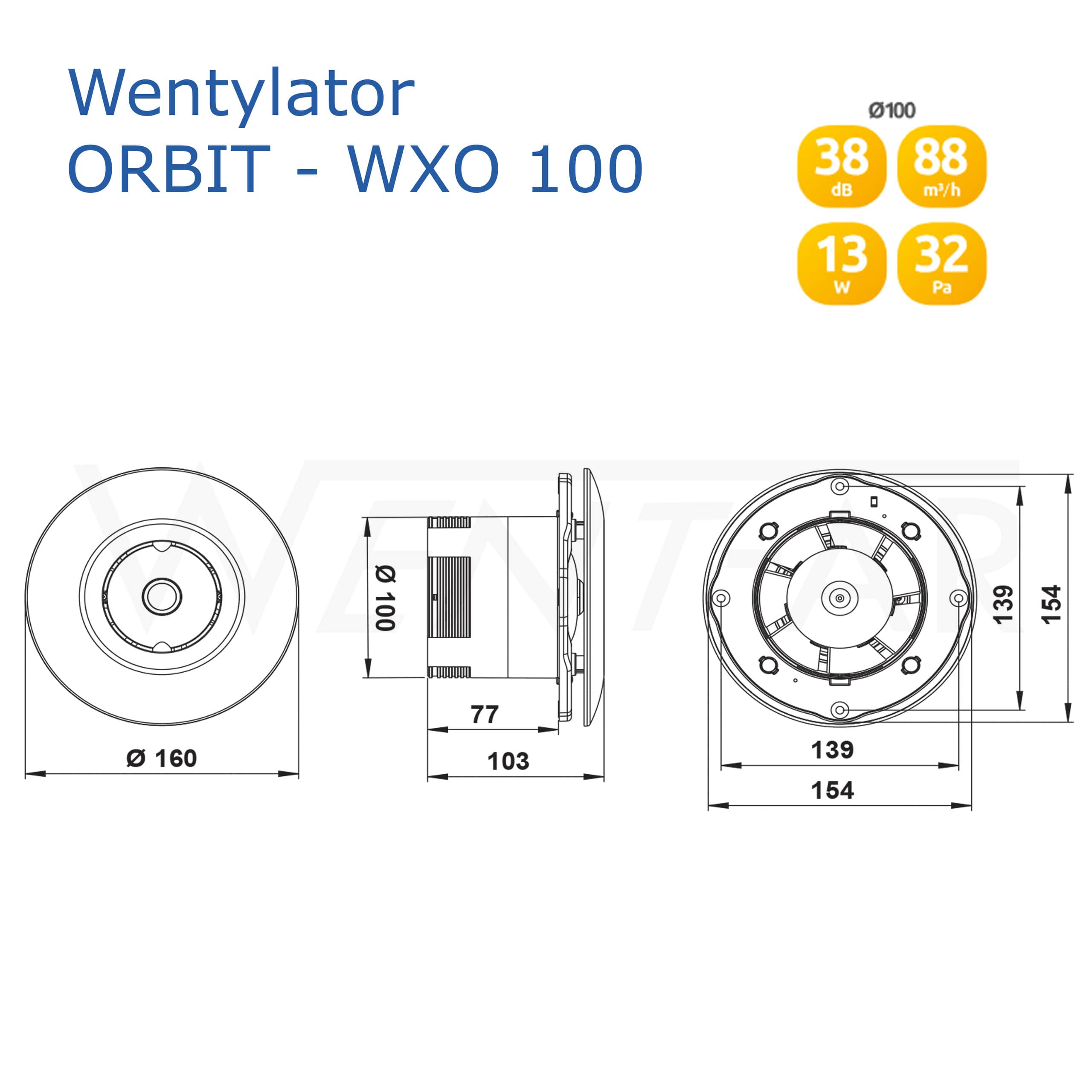 Wentylator sufitowy - z czujnikiem wilgotności - Orbit WXO 100 H