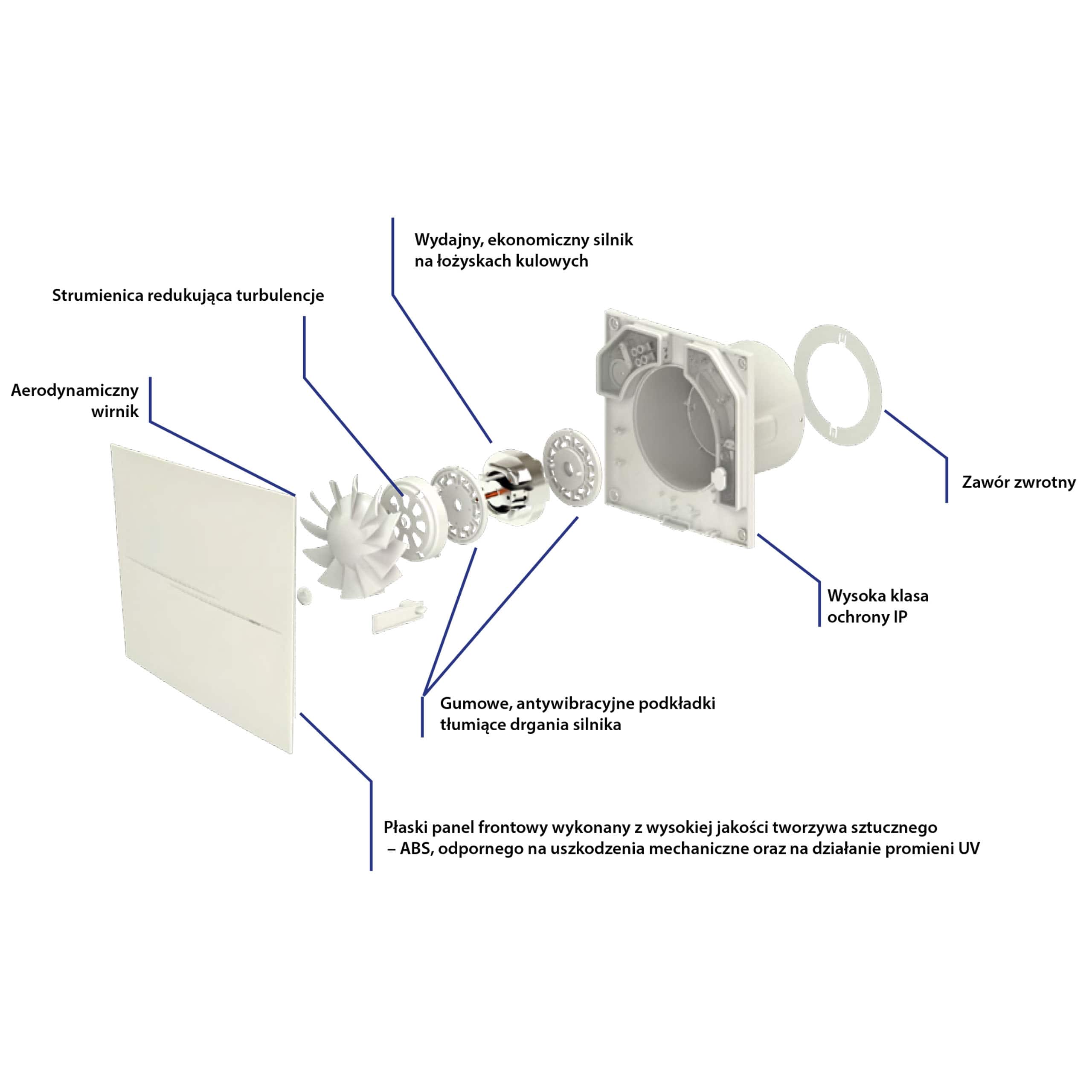 Cichy wentylator łazienkowy - z czujnikiem wilgotności - Quiet Style 100 TH - k. biały