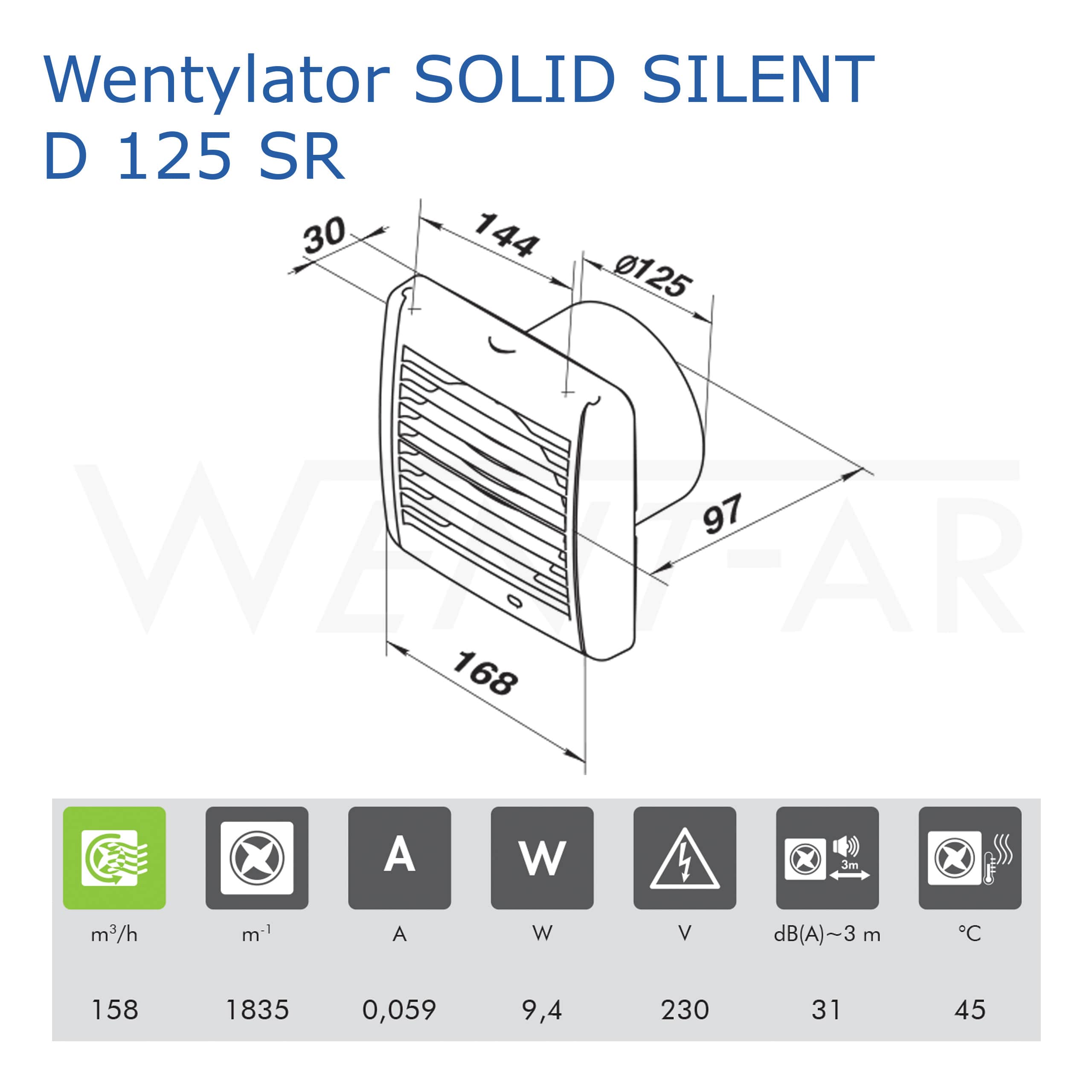 Cichy wentylator łazienkowy - z czujnikiem wilgoci- Solid Silent 125SR H