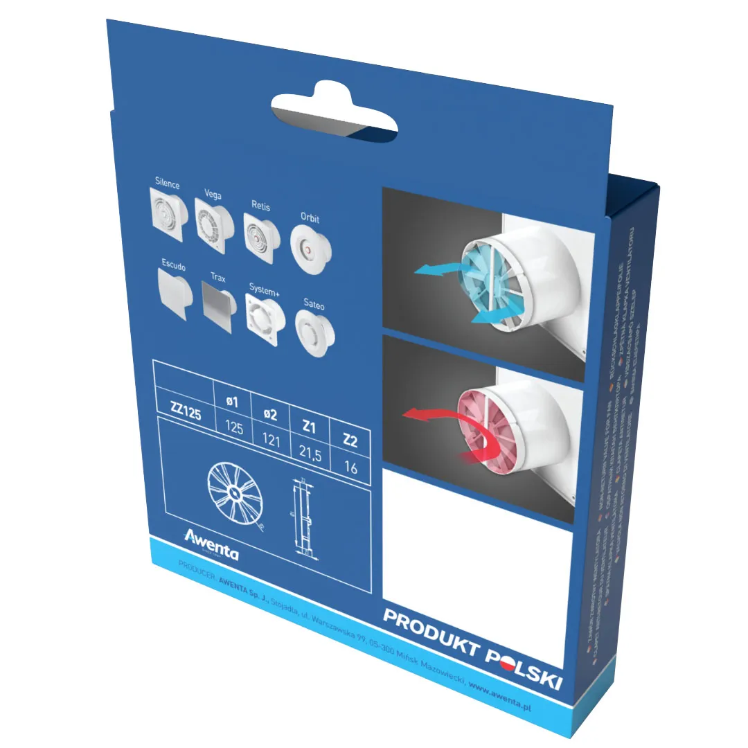Zawór zwrotny ZZ 125 dedykowany jest do wentylatorów o średnicy 125 mm.